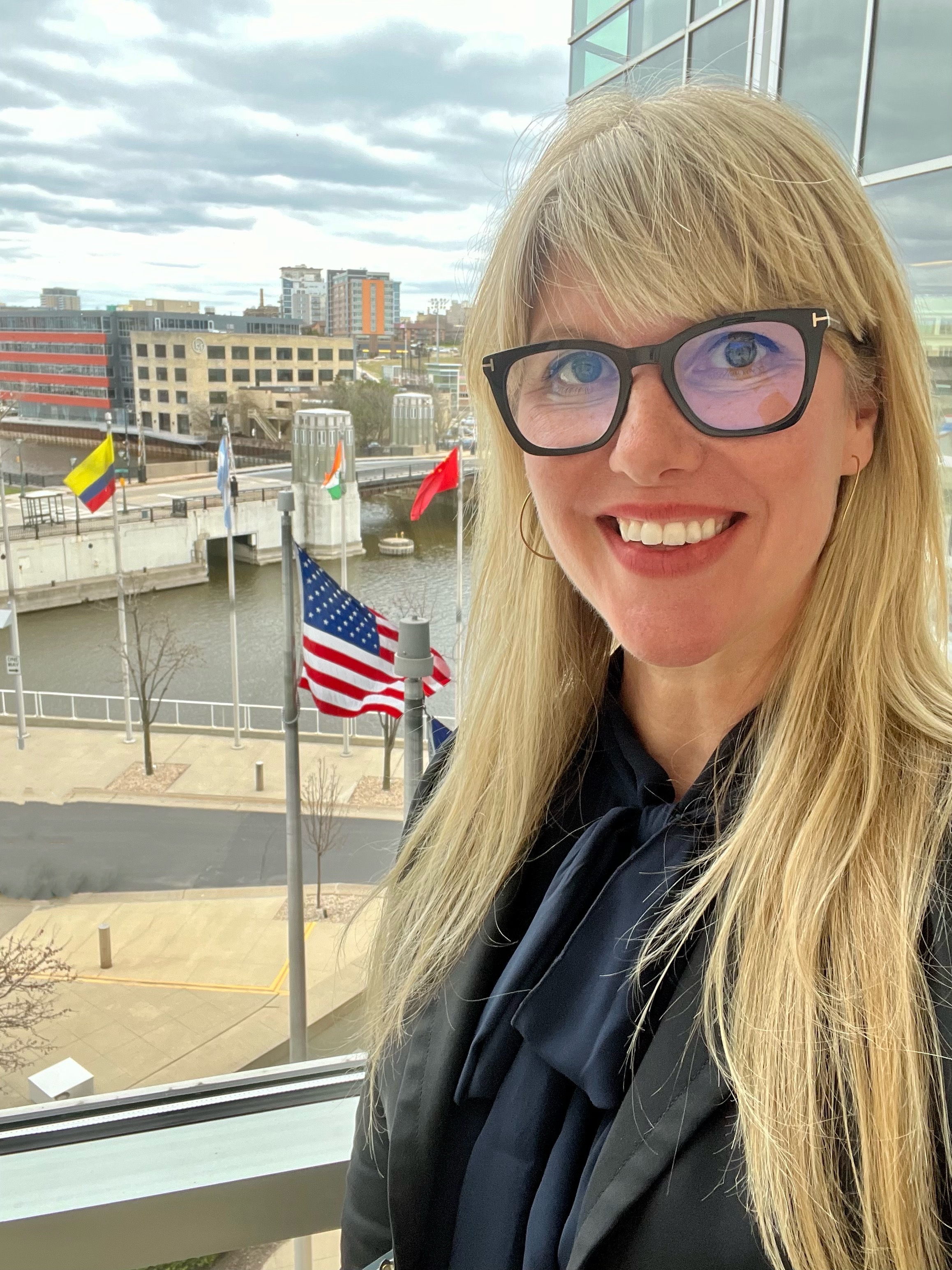 Here I am, proudly standing among the international flags that fly in front of ManpowerGroup’s HQ on Water Street in Milwaukee, WI.